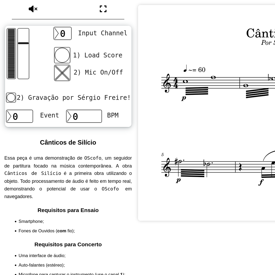 Cânticos de Silício I – first piece using OScofo AI to sync performer and computer, testing trill detection.